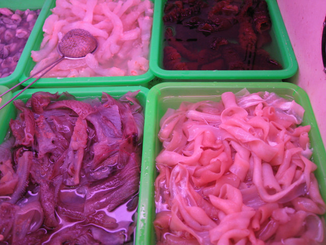 還有透抽、魚皮、九孔等貝類食材